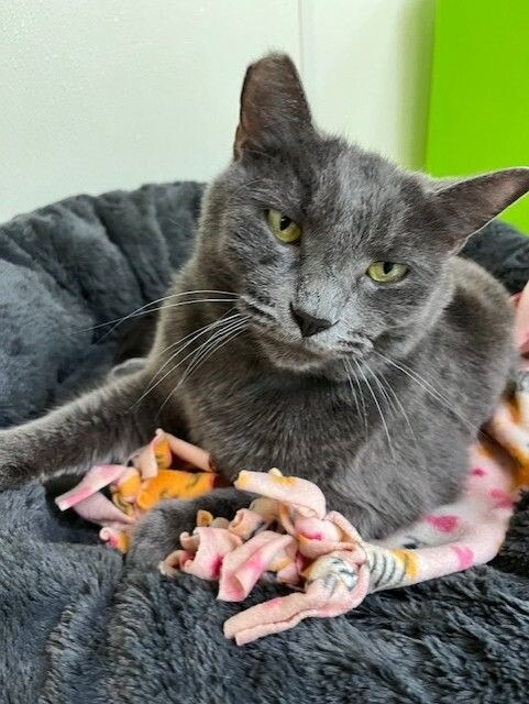 From the moment I met Lilly, she came right up to me. I was with a friend and some of the amazing volunteers, and Lilly immediately clung to me. She was the sweetest, most playful little kitty—giving me gentle love bites and head boops from the very start. It was clear: she had chosen me, and she was ready to come home. Since bringing her home, Lilly has been an absolute delight. She’s incredibly vocal and always has a lot to say! It’s not uncommon to find me having full conversations with her—three minutes straight of meowing back and forth. She’s obsessed with feather toys, and within just a few hours of arriving, she had already hunted down and “defeathered” her entire new collection.