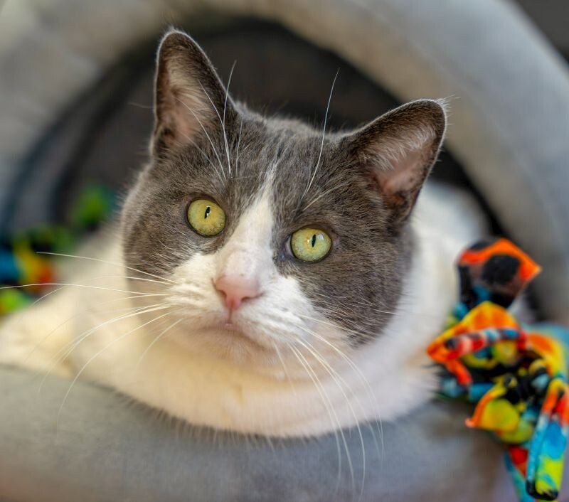 Mitzy Marbles is delightful feline was born in foster care back in 2016 but was returned to the shelter in 2020. Despite some challenging behavior needs, Mitzy is an absolute ball of fun who loves nothing more than slurping up water droplets from the faucet and indulging in the occasional treat. However, Mitzy requires a special kind of home. She needs to go to an experienced cat owner who is adept at reading body language, as Mitzy can become overstimulated when handled and is especially afraid of men. In the right environment, Mitzy is sure to thrive and become a cherished member of the family, so she will wait at Purrfect Pals until that time comes.