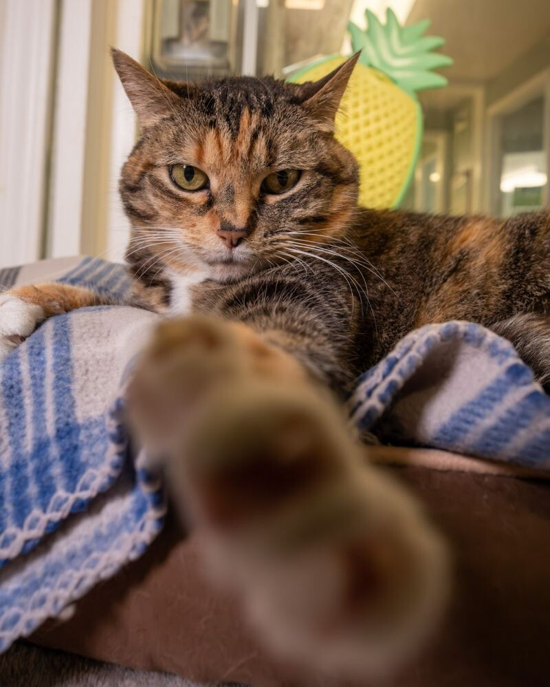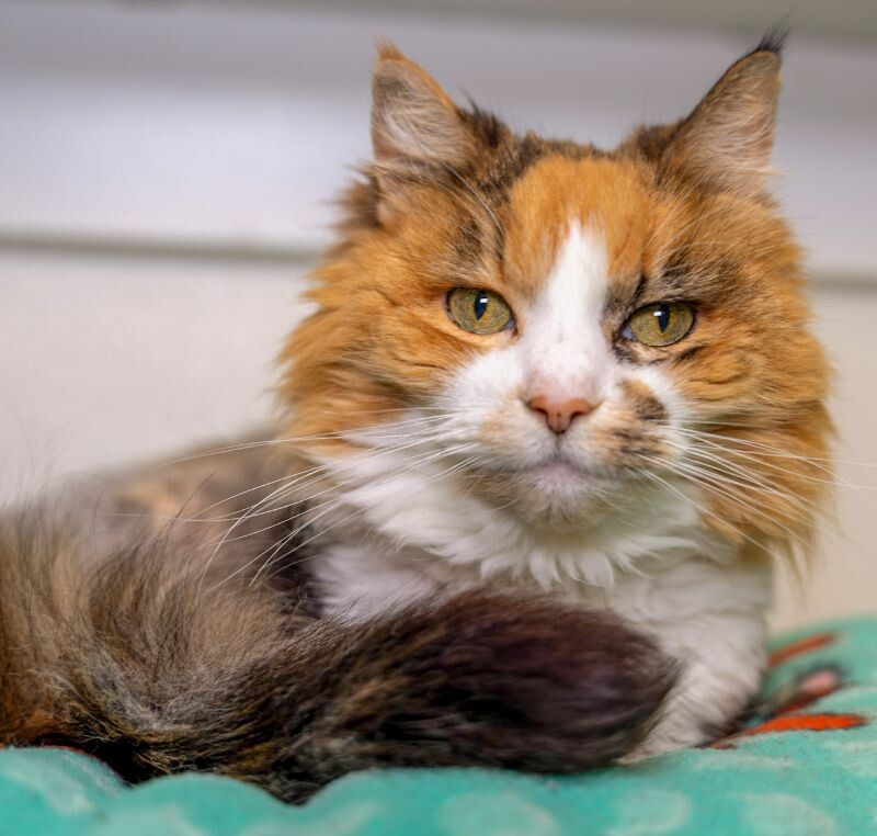 Pixie is a beautiful kitty, who was surrendered as her owner was moving into a home with a prey driven Husky. Pixie is an absolute cuddly cat who loves to be with people! Pixie loves her laser pointer, and she has a talkative side to her too. Her favorite place to view the world is from her cat tower. Pixie would do best being the only cat in her future home, as has been bullied by other cats previously. Pixie has lived with young children before, and tolerated them all right. Pixie does have a history of feline asthma that is controlled very well by a daily medication. Pixie had a recent extensive dental that removed most of her teeth, but she is able to eat dry food just fine. While Pixie patiently waits for her forever family, would you consider becoming her sponsor and supporting her journey?